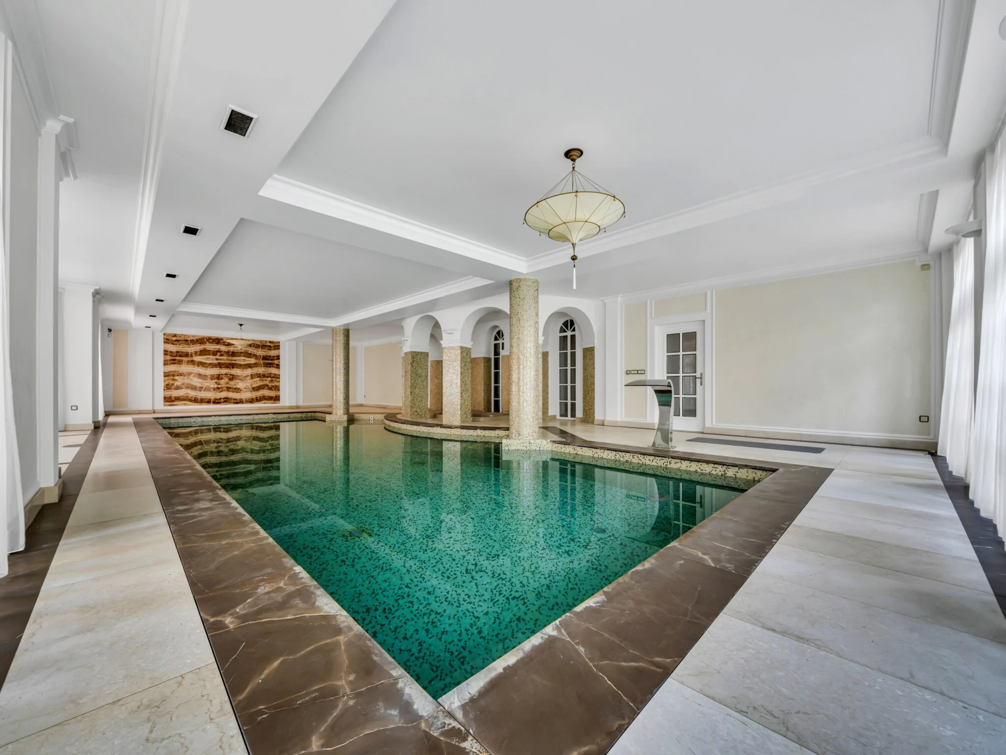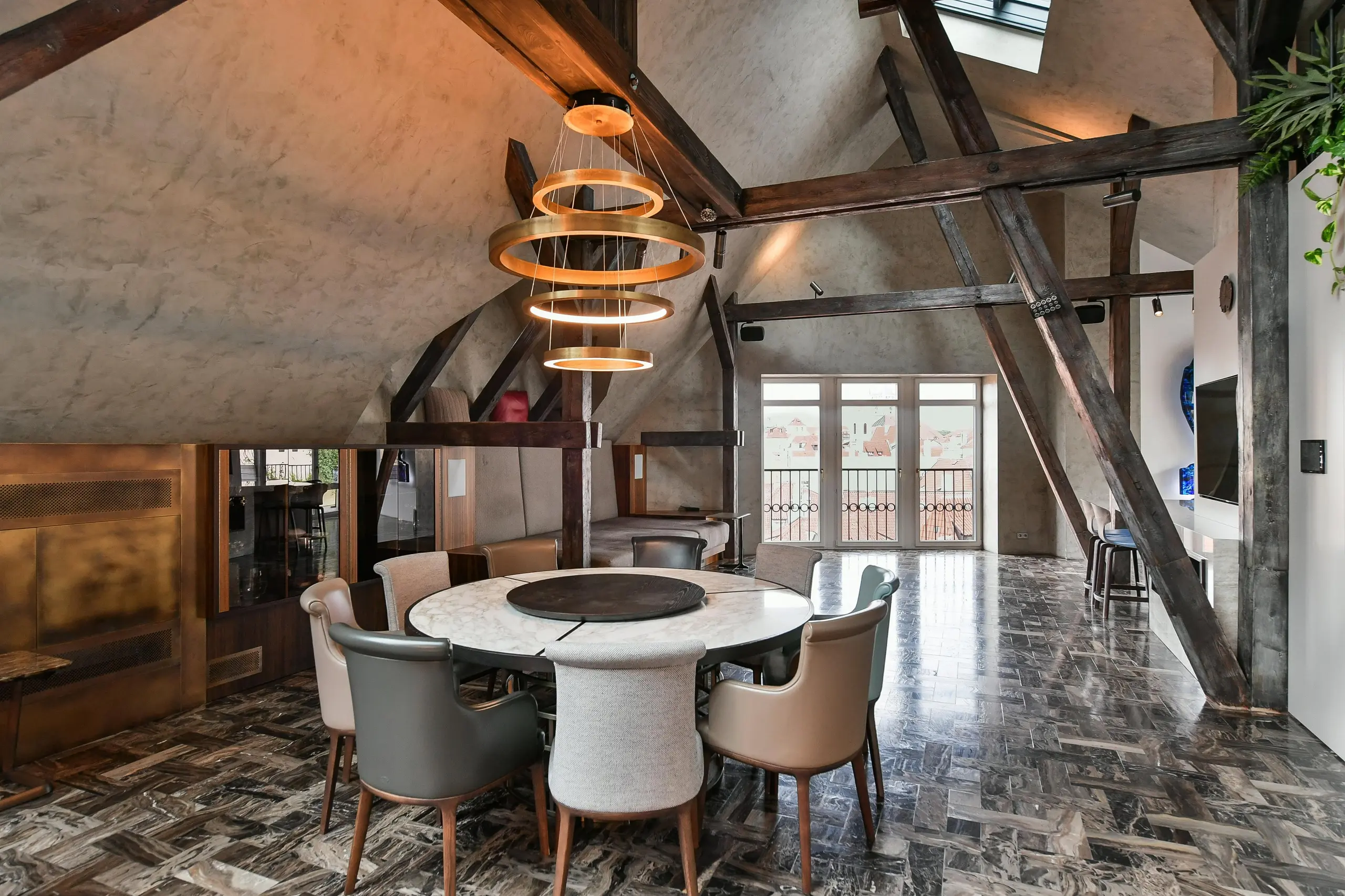 Несмотря на то что это мансардная квартира, её размеры превосходят размеры обычного дома — в общей сложности, 443 квадратных метра. Помимо гостиной и трёх спален, здесь есть кабинет, тренажерный зал и спа-зона (по планировке получается 9+кк).