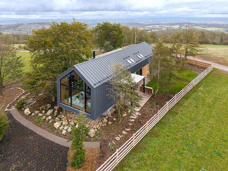 Это недавно построенный загородный дом в Блатно (возле Хомутова), завоевавший титул "Stavba roku 2025".