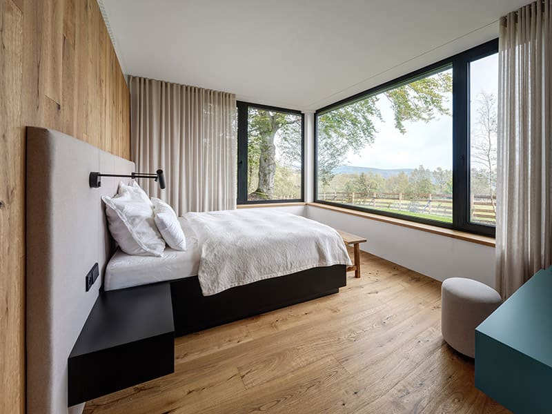 Столовая соединена с двумя уютными открытыми террасами, где хозяева могут насладиться чашечкой кофе под освежающим утренним солнцем у бука, которому более ста лет.