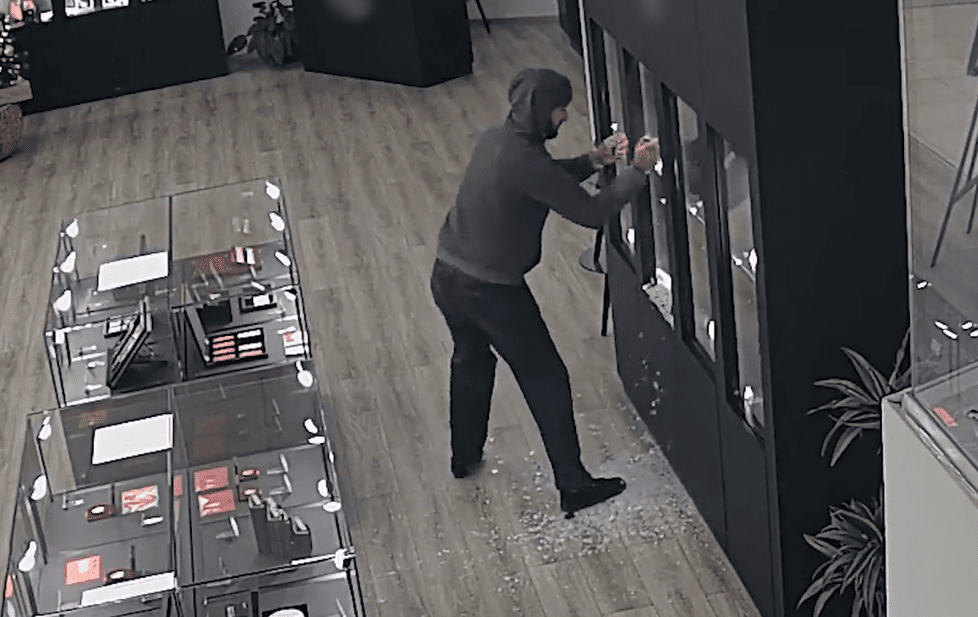 Видео: в Чехии мужчина украл золото с витрины магазина на сумму свыше 4 500 000 крон