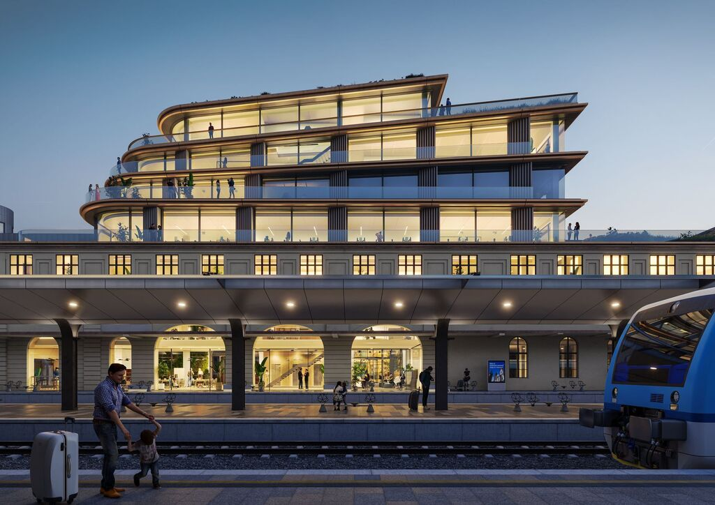 Визуализация: как изменят бывшее почтовое отделение возле железнодорожного вокзала им. Масарика в Праге