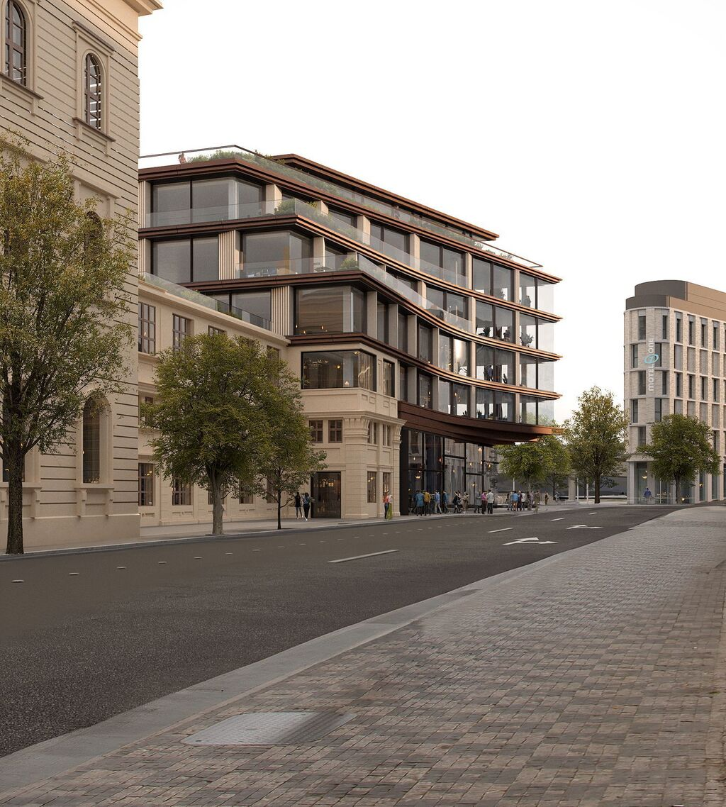 Чешский архитектор Якуб Клашка выиграл конкурс с проектом превратить дом времен Первой Республики в стеклянное здание с магазинами и четырьмя этажами c офисами.