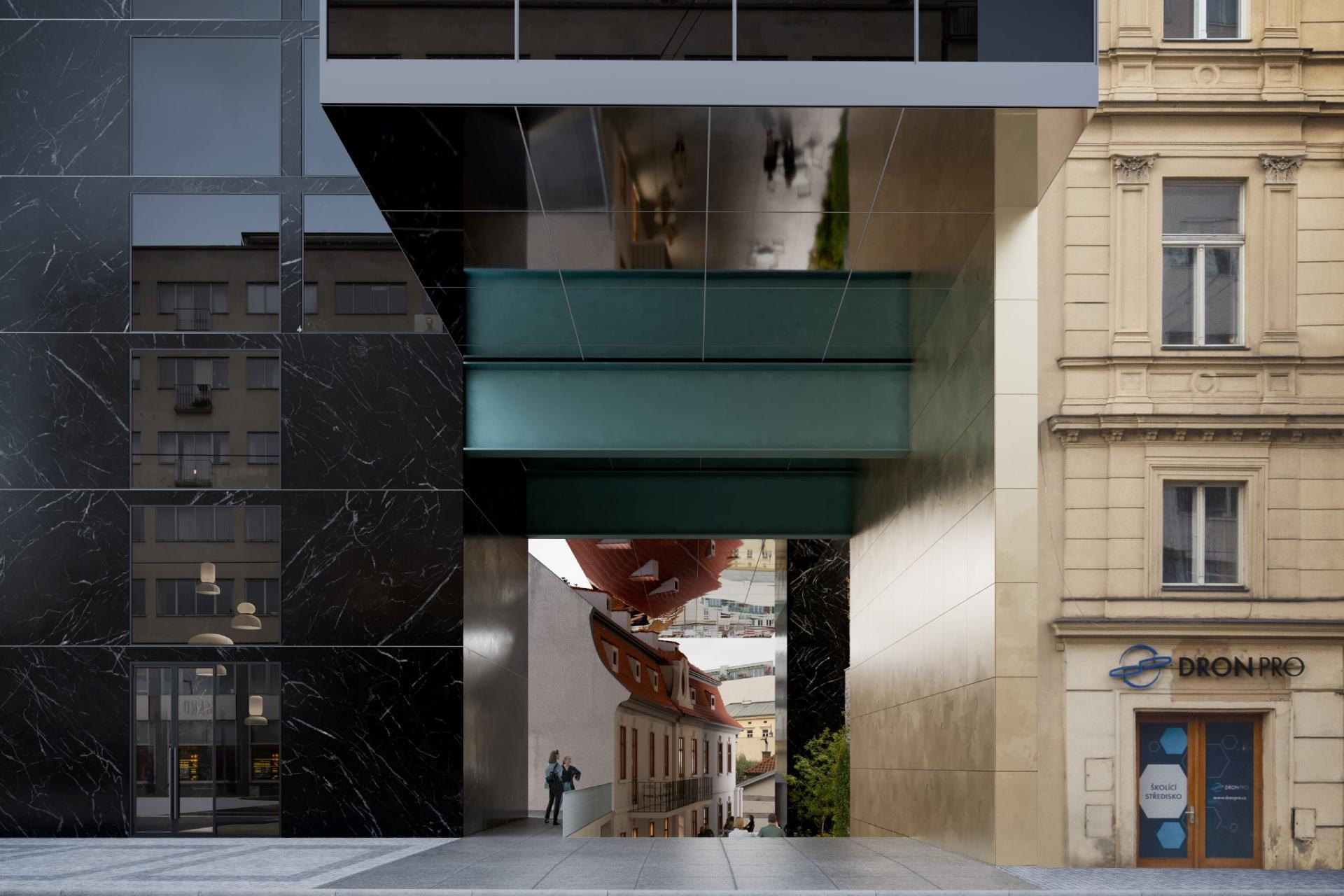 Вместо оригинального дома архитектора Евы Йиржичны, который после девяти лет подготовки получил отказ из-за специалистов по охране памятников, инвестор на международном конкурсе выбрал новую концепцию реализации участка по адресу Revoluční 30.