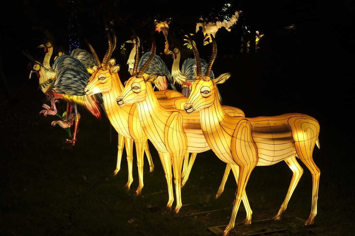 Более двухсот фонарей в форме животных и растений будут освещать нижнюю часть территории зоопарка, создавая завораживающую атмосферу после захода солнца.