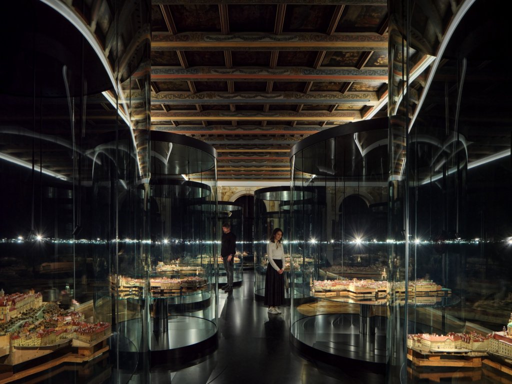 Макет будет центральным элементом и на новой выставке. На этот раз он будет разделен на 12 цилиндрических витрин, чтобы желающие могли рассмотреть детали отдельных зданий.