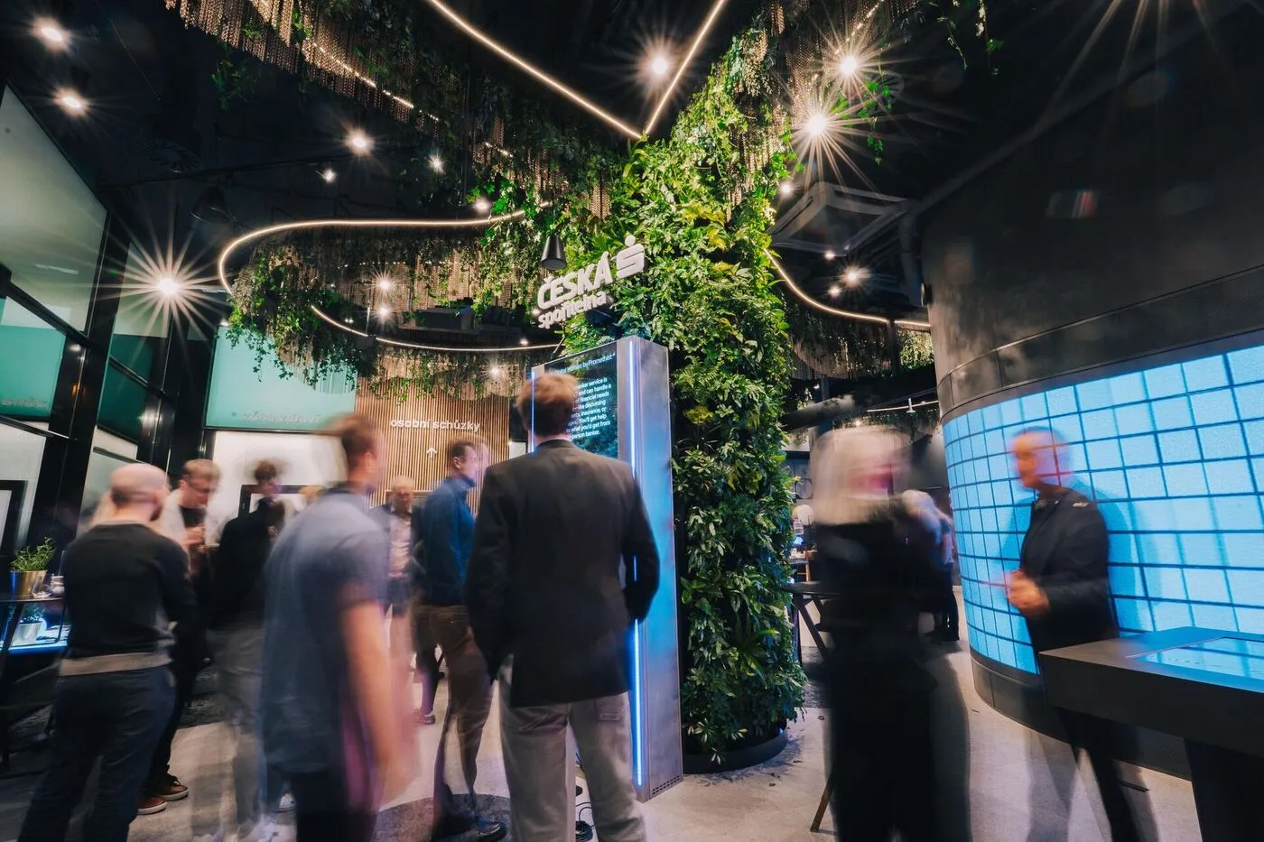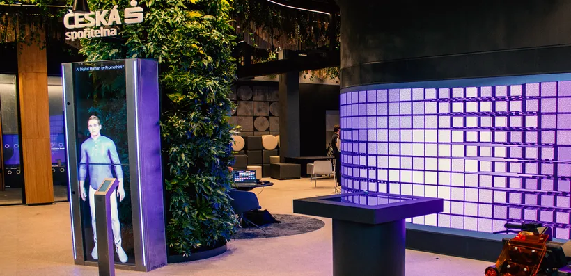 На большом светодиодном экране посетители увидят информацию, основанную на данных Česká spořitelna и Чешского статистического управления, — например, о динамике цен на недвижимость за последние годы, о трафике цифрового банкинга George или о растущем числе клиентов, которые инвестируют с банком.