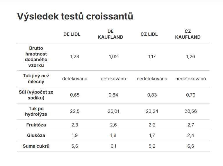 В сравнении отмечается, что все круассаны выглядели аппетитно: хрустящие снаружи и мягкие внутри. Ни в одном из них не было слишком много сахара — в этом отношении круассаны, купленные в сети Kaufland, были слаще. Вес и содержание соли были сопоставимы, но в выпечке, из немецкого Kaufland, было больше всего жира.
