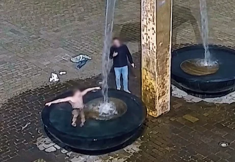 Видео: в городе Пльзень любители купаться в фонтане открыли сезон