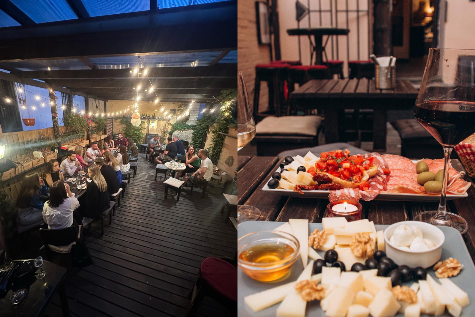 Еды в меню почти нет, как и во всех винных заведениях, но можно заказать тарелку закусок.
