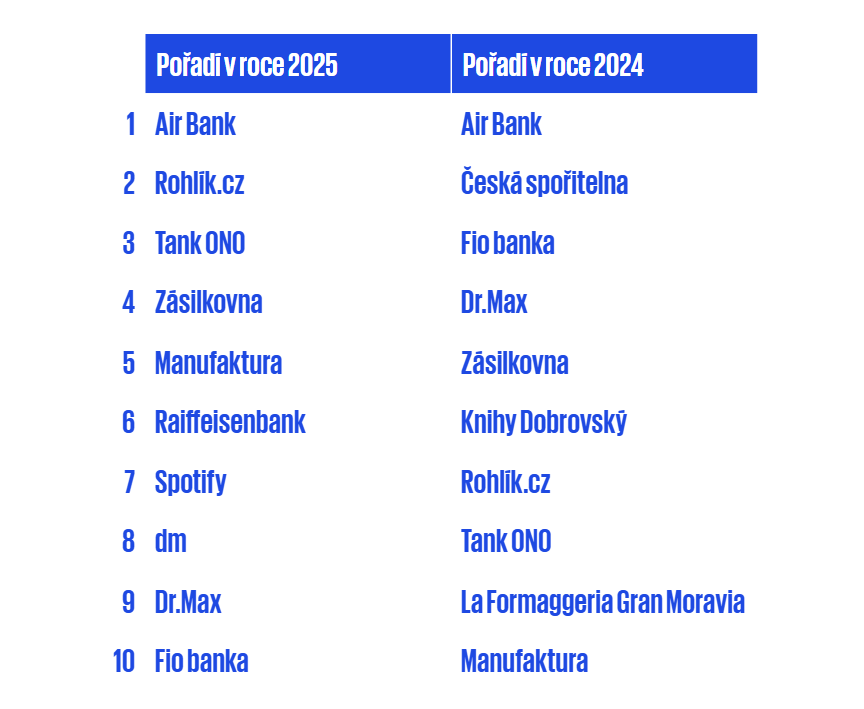Рейтинг: любимые бренды жителей Чехии в 2025 году