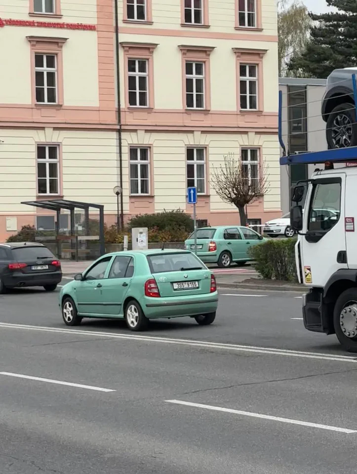 Кому-то удалось заснять две легендарные Škoda Fabia в фисташковом цвете.
